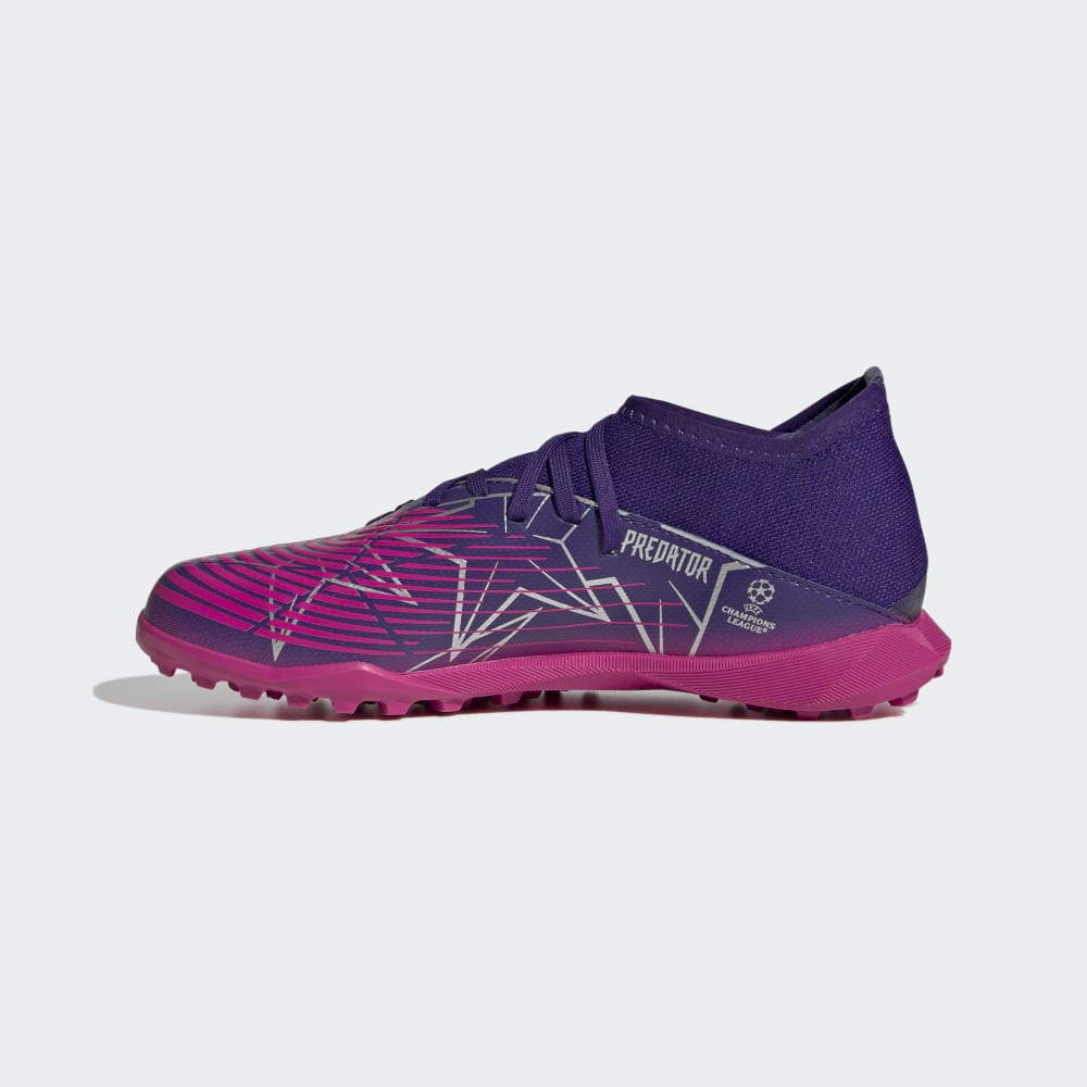 Some walk into the cage and see limitations. You see possibilities. Because you've been doing the impossible all your life. Change the game in adidas Predator. These juniors' football boots help you own the ball with a Control Zone upper containing strategically placed areas of grip-enhancing print. The lugged outsole keeps you in charge on artificial turf. UEFA Champions League graphics add the perfect finish.