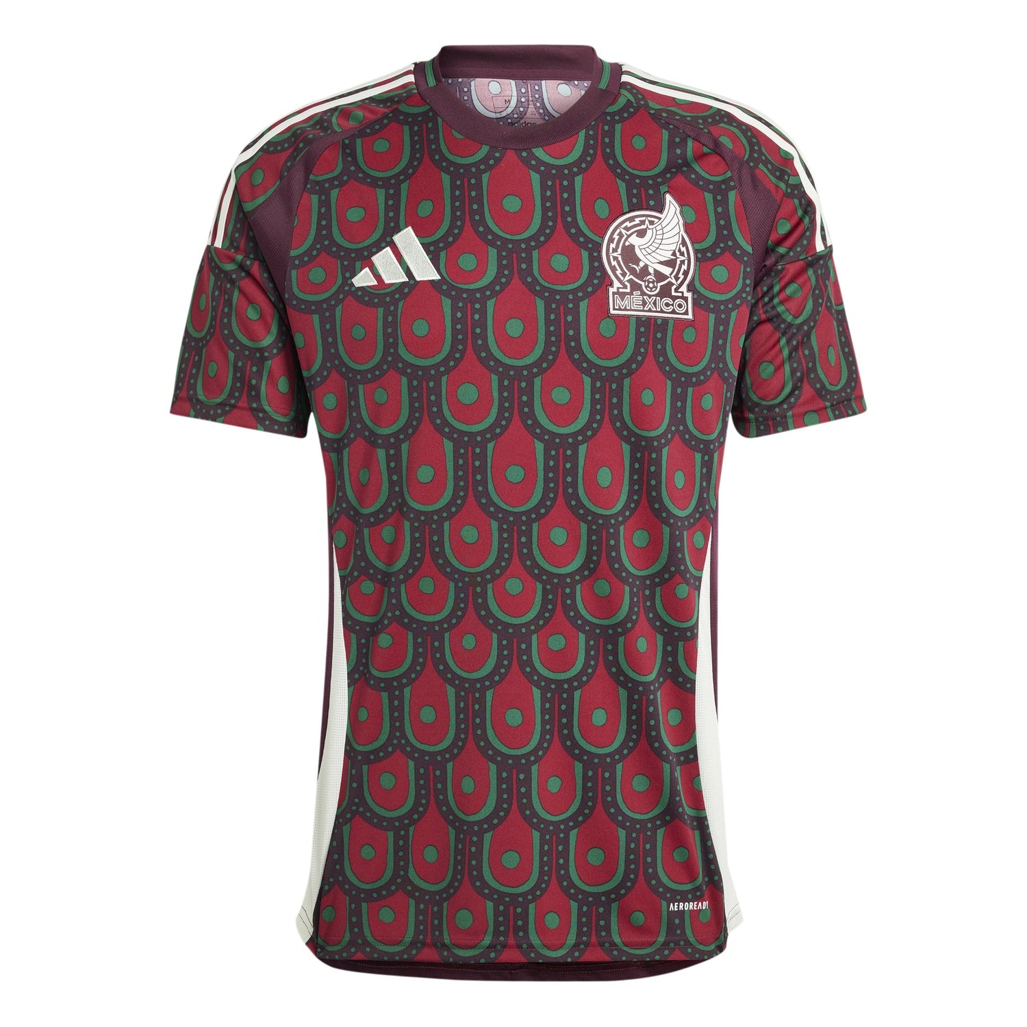 Created for expressive soccer fandom. Repeated across the front and back, the eye-catching eagle design on this adidas Mexico home jersey takes its inspiration from traditional folk art. Behind the rich symbolism, moisture-managing AEROREADY makes this shirt perfect for backing your team. That woven badge on the chest puts your support on permanent display. This product is made with 100% recycled materials. By reusing materials that have already been created, we help to reduce waste and our reliance on finite resources and reduce the footprint of the products we make.