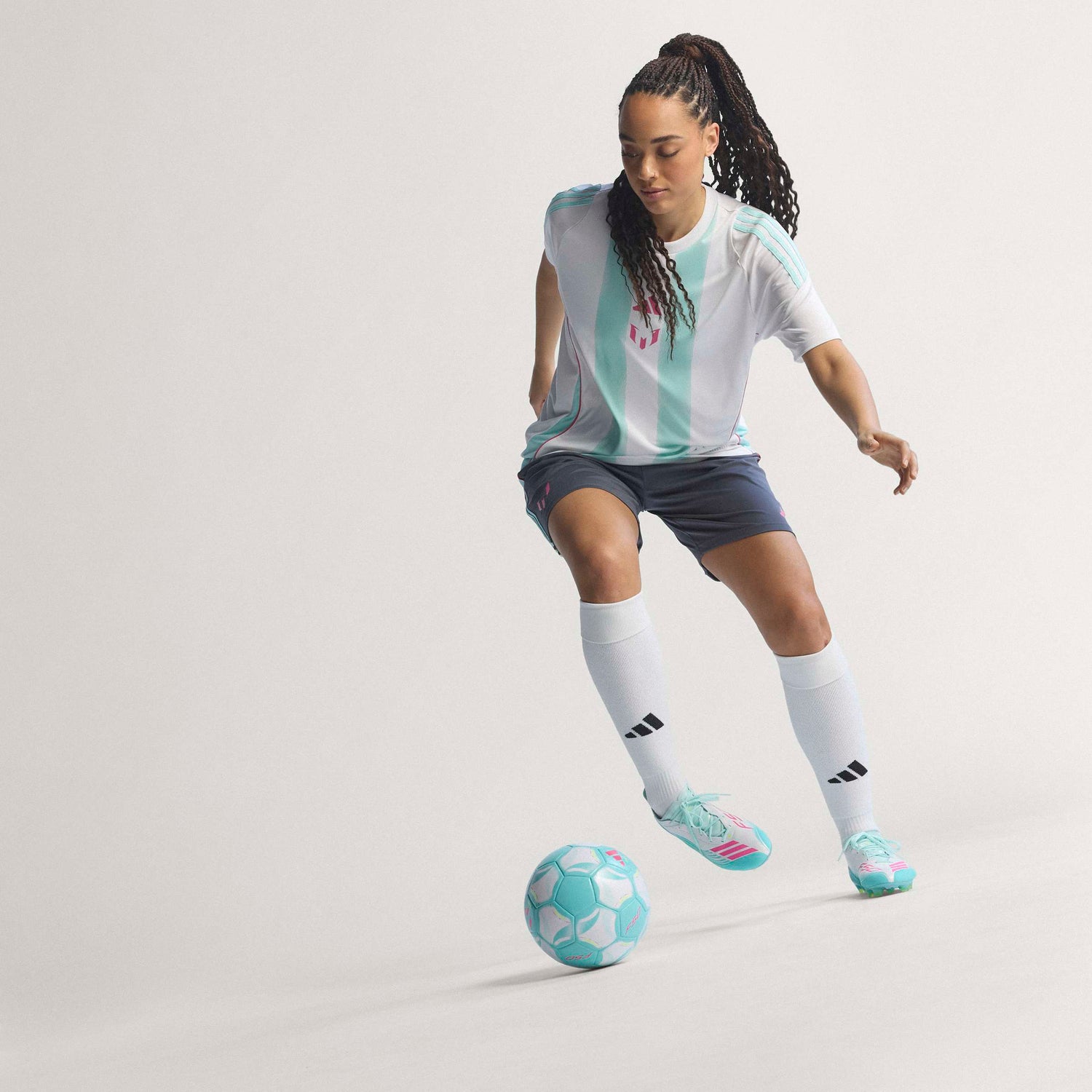 • The adaptable burrito tongue wraps around your foot, giving a snug fit that mirrors Messi's own choice. The HybridTouch upper provides a molded fit with cushioning in key contact areas for comfort and a soft touch on the ball, while the 3D haptic print helps with ball contact, especially when dribbling at high speeds.