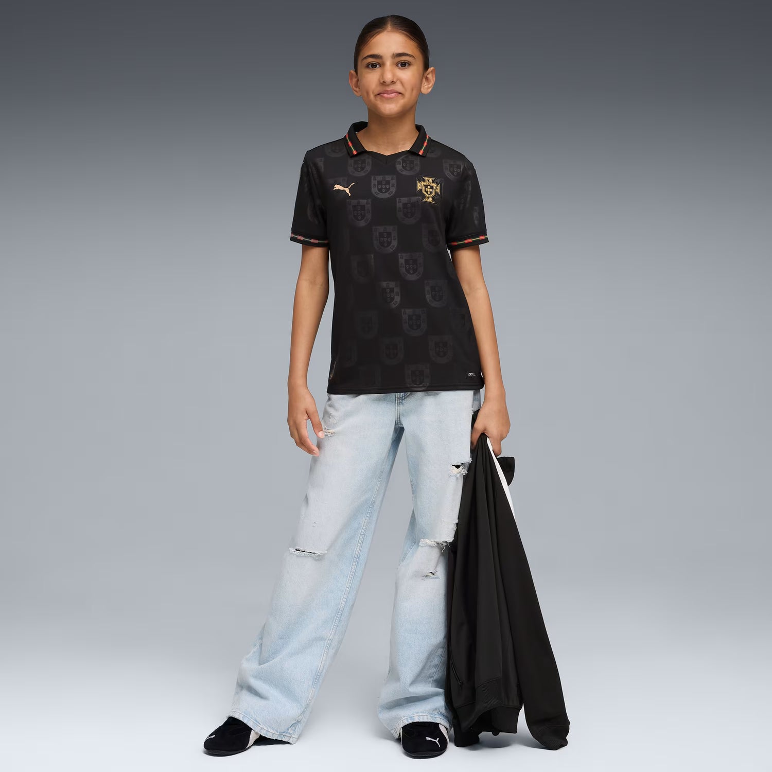 PUMA Portugal Special Edition Youth Soccer Jersey 25/26- Black/Gold