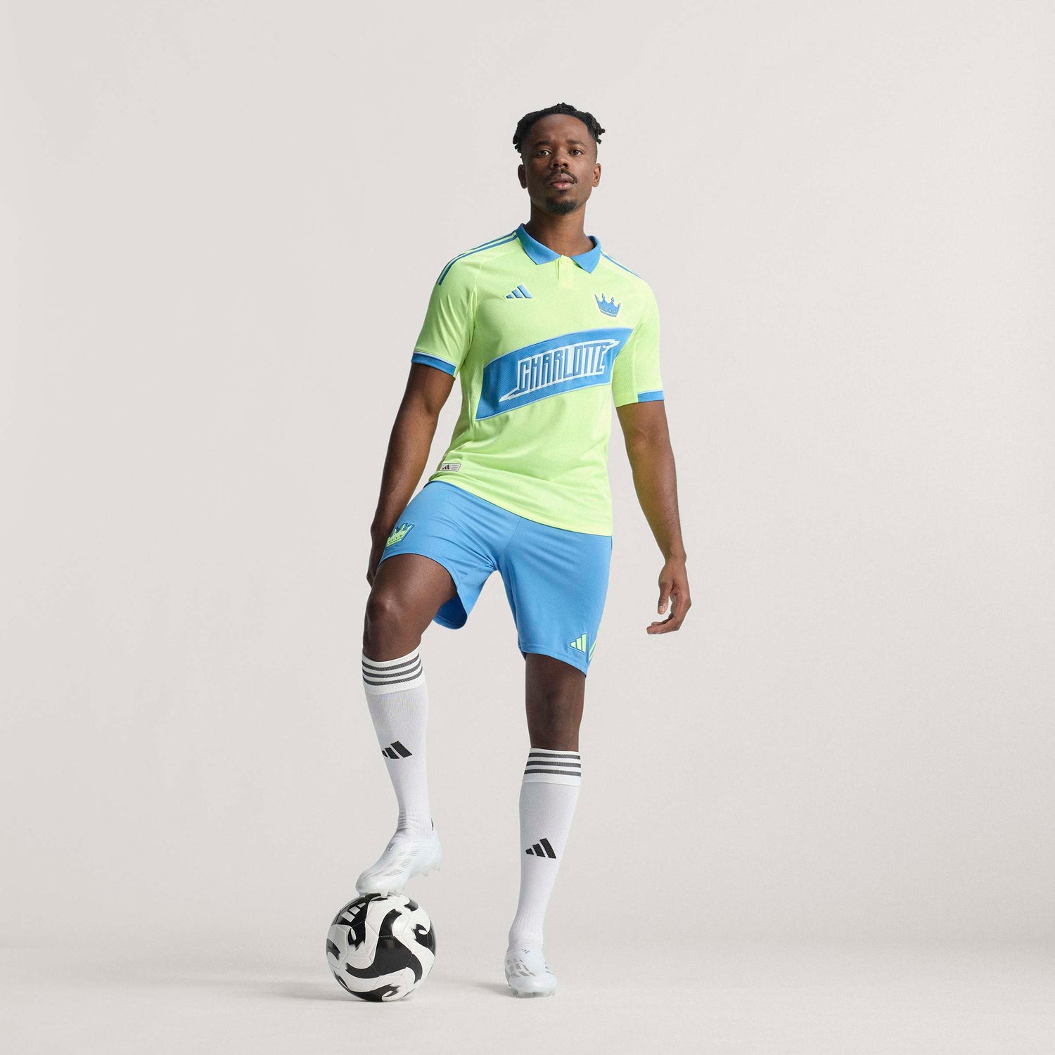 A tribute to Charlotte's football pioneers. This adidas third jersey borrows its bold look from the clubs that laid the foundations for Charlotte FC's success. The city name on the chest makes a real statement. Moisture-managing AEROREADY and a woven crown badge keep fans comfortable and proud.