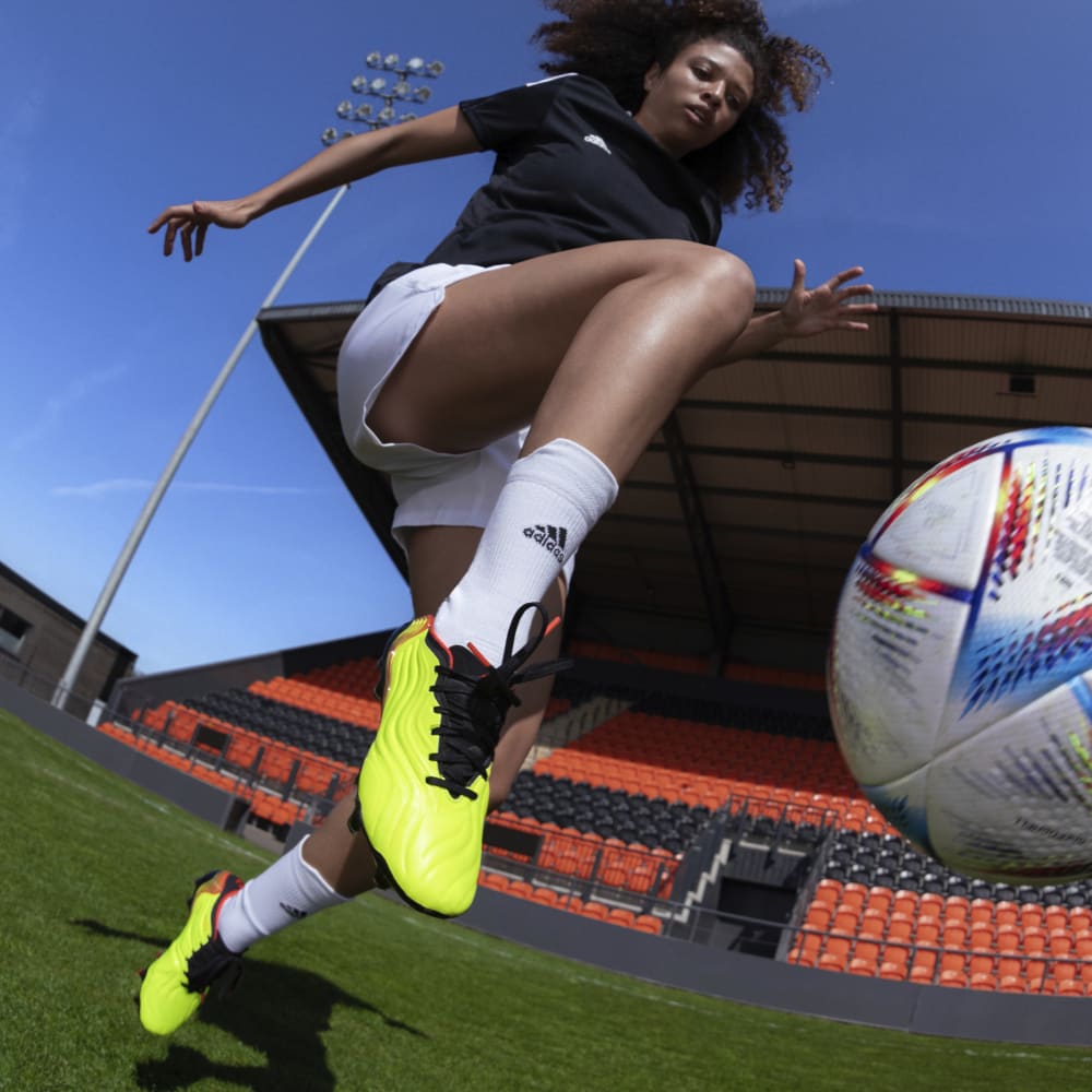 Cuando entres al campo, no te limites a jugar. Siéntelo. Acércate más al balón con estas botas para terreno firme adidas Copa Sense. Su antepié de cuero de canguro suave y sin costuras y los Touchpods de espuma se combinan para que los toques sean tan suaves como la seda. En el talón, los Sensepods rellenan los huecos para un ajuste perfecto que te ayuda a sentirte en armonía con tus botas de fútbol.
