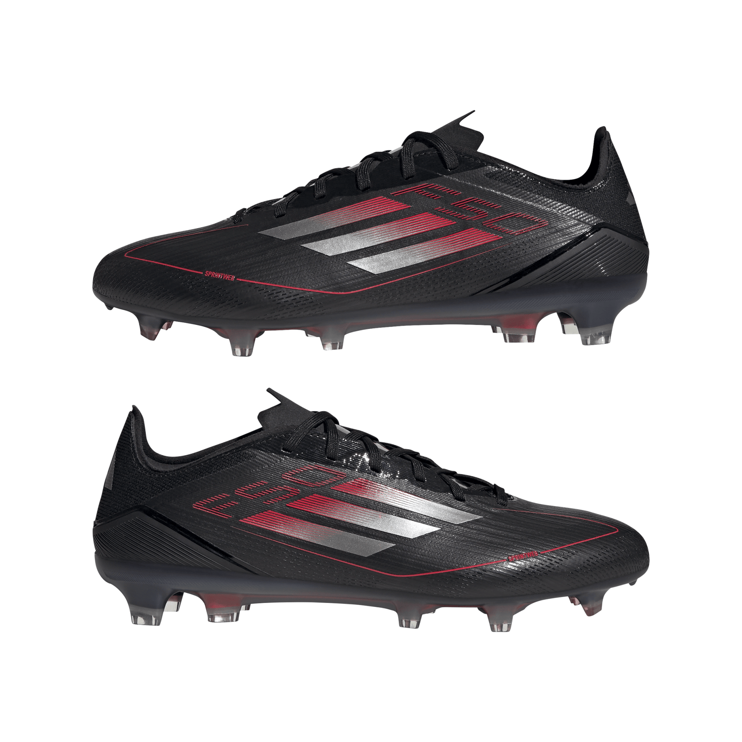 Botas de fútbol para terreno firme adidas F50 Pro, color negro y rojo