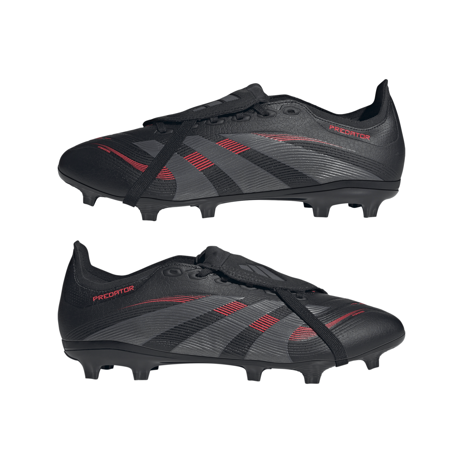 Botas adidas Predator League Fold-Over Tongue para terreno firme y múltiple, color negro y rojo