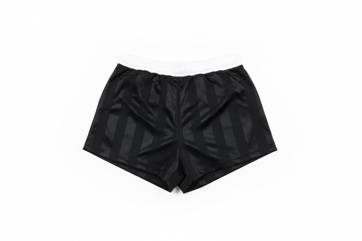 Knit short in Dri-FIT fabrication, contrasted waistband on the inside and outside main body fabric colored drawcord. All branding is embroidery.