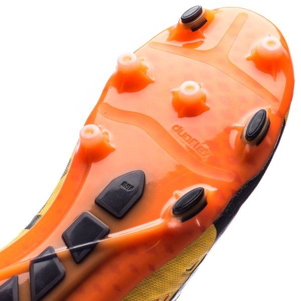 The evoPOWER Vigor 1 optimizes the interaction between kicking velocity and accuracy. The spandex sock combined with the one-way stretchable AdapLite upper material and the GSF outsole technology allow the foot to bend like in a barefoot kicking motion enabling the optimum power delivery to the ball. GripTex enhances ball control. The AccuFoam 3D dots on the in- and outside improve comfort and kicking accuracy. The anatomically engineered outsole offers an optimal mix between stability and agility.