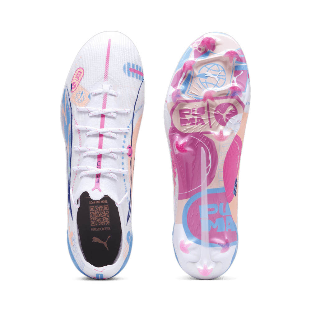 PUMA Ultra 5 Ultimate Vol. UP FG Firm Ground Soccer Cleats - White/Luminous Blue